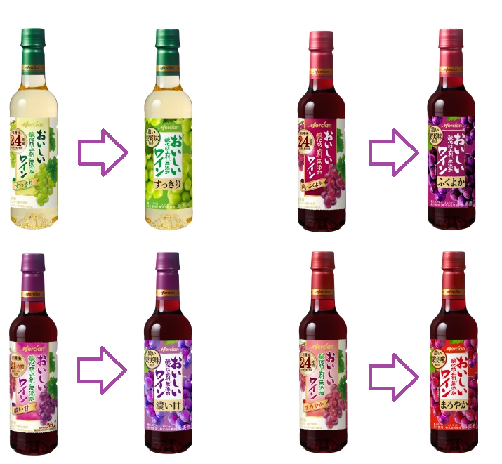 「おいしい酸化防止剤※無添加ワイン」スタンダードシリーズは、2024年1月中旬よりリニューアルし、パッケージデザインも以下のように変更しています。※ 亜硫酸塩