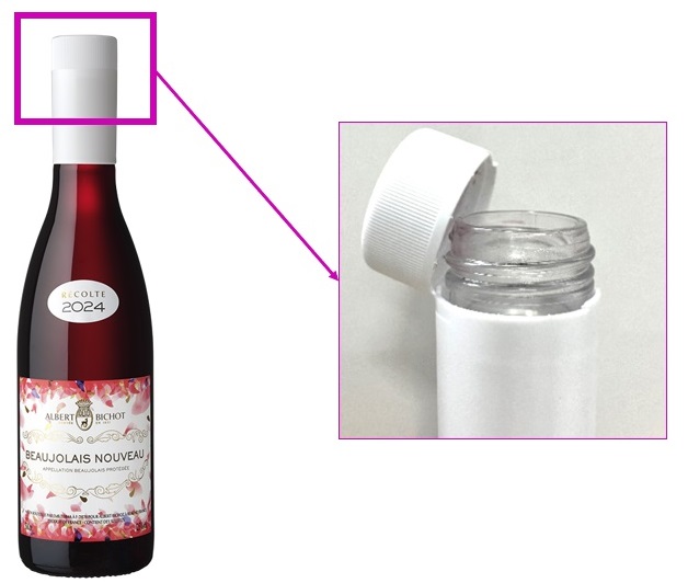 「ボージョレ・ヌーヴォー ペットボトル 2024」のキャップは、容器と一体化していて、離れない仕様になっています。これは、プラスチックごみを削減し、海洋汚染を減らすことを目的としたEUの取り組みの一環で、キャップが外れるペットボトルの販売が禁止されたことによります。 (EU外へ輸出される商品も対象。3リットル未満の飲料製品が対象。)