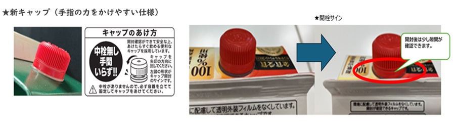 ●三角屋根型の紙パック商品は、開封確認ができ、開けたらすぐ飲める便利な中栓が無い「プルレスキャップ*①」を採用*②しています。