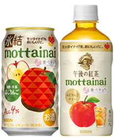 - mottainaiシリーズらしい農家さんの果物に対する想い・温かみを感じる印象は残しつつ、20歳未満のお客様が誤ってお酒である「氷結mottainai」を購入しないようパッケージに大きく「お酒」と表示し、果実のイラストを変えるなどの工夫をしています。